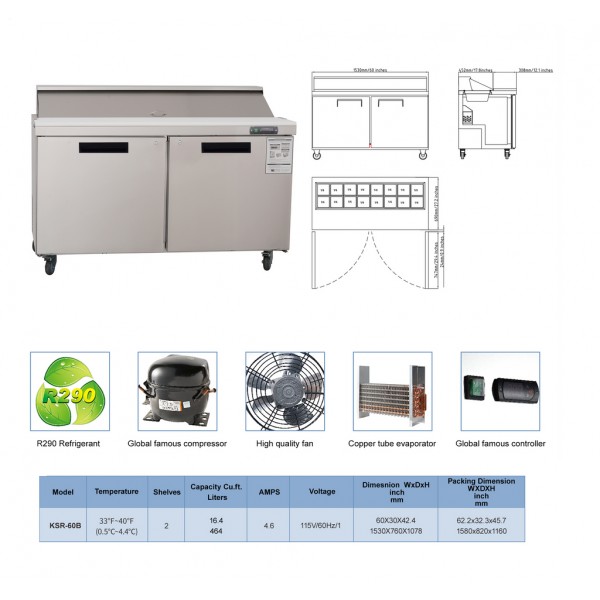 Sandwich / Salad Prep Table, 60 inch, 2 door, Refrigerated